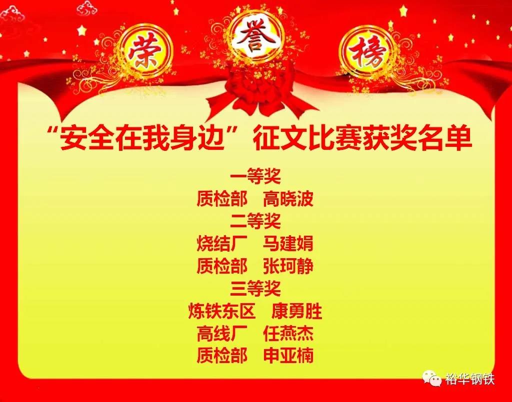 為全面貫徹國家安全生產方針,落實安全生產責任制,結合安全生產工作實際,扎實做好安全生產各項工作。提高廣大員工的安全防患意識,扎實推進2020年“安全生產月”活動深入開展,不斷加深對安全知識的了解,增強將理論知識應用于實際的能力。全面突出“消除事故隱患,筑牢安全防線”的安全月活動主題。6月26日下午,裕華鋼鐵“2020年度安全知識競賽”及“安全在我身邊”征文獲獎者頒獎儀式。