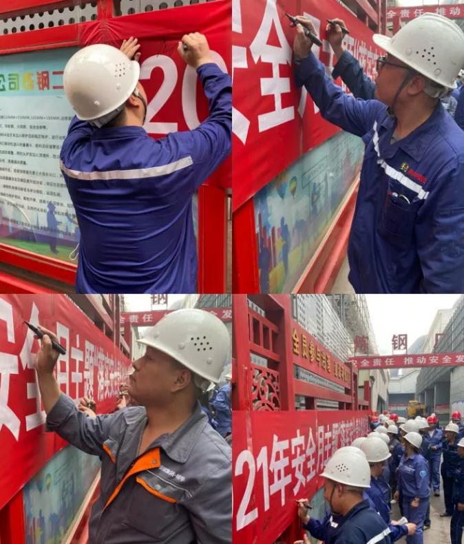 煉鋼廠副廠長唐國新指出:今天我們在此舉行安全月簽字宣誓活動,目的就是以“落實安全責任,推動安全發展”為主題,強化習近平總書記提出的“人民至上,生命至上”的理念,切實把安全責任抗在肩上,落實在行動中。