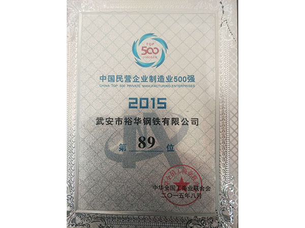 “中國民營企業制造業500強” 、“中國企業500強”、“中國企業制造業500強”。